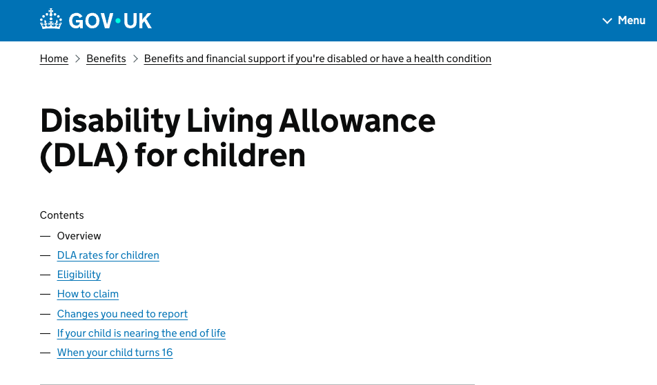 Disability Living Allowance (DLA) for Children